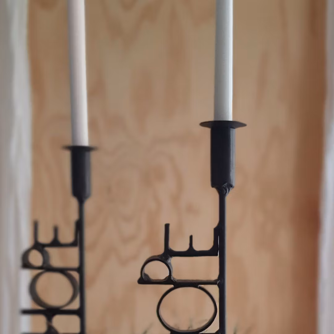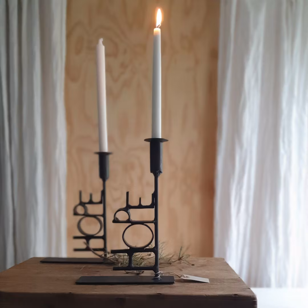 Hopp och ljus med handgjorda ljusstaken HOPE. Linoljebränt smide från smedjan i Killeboda.